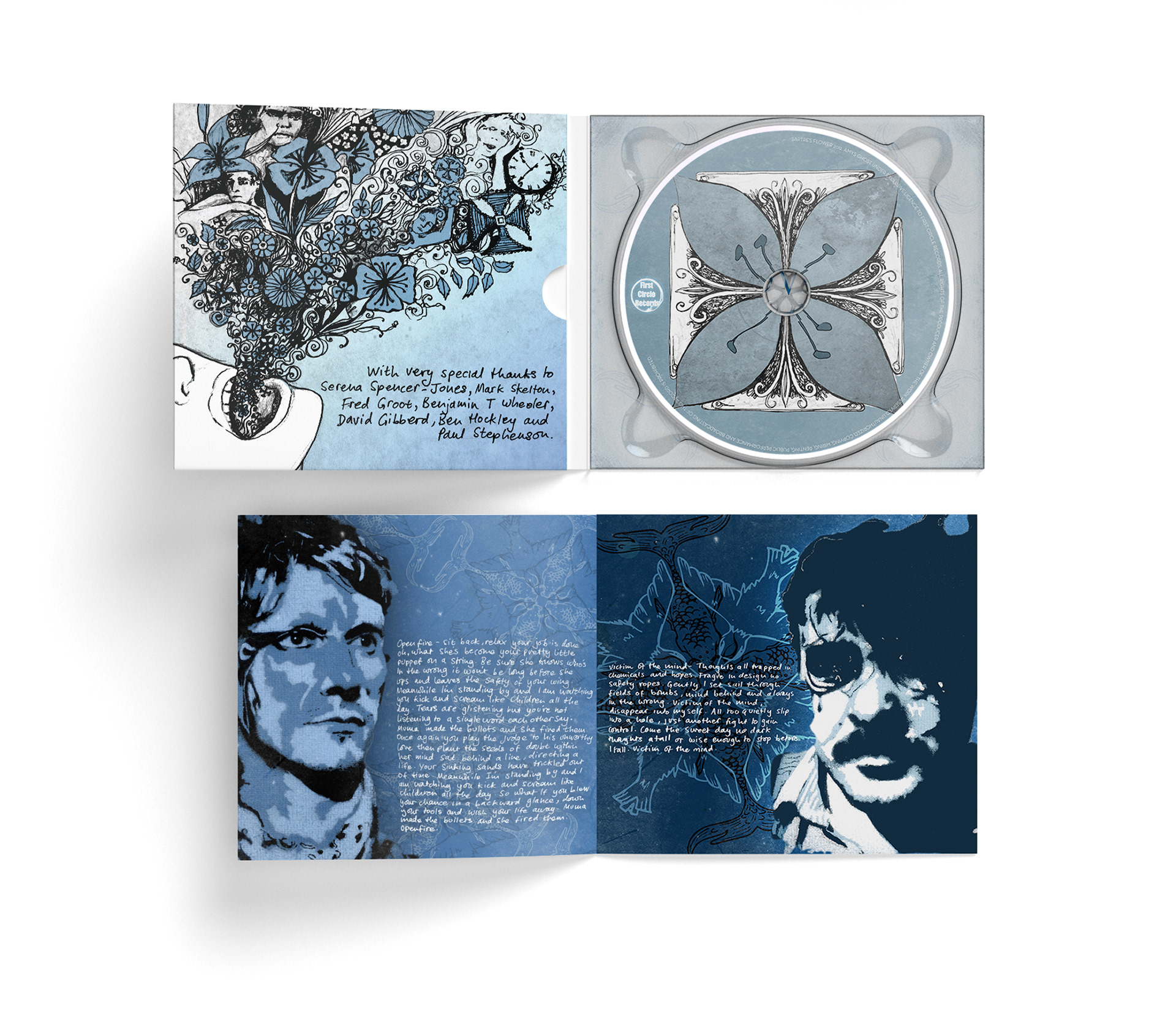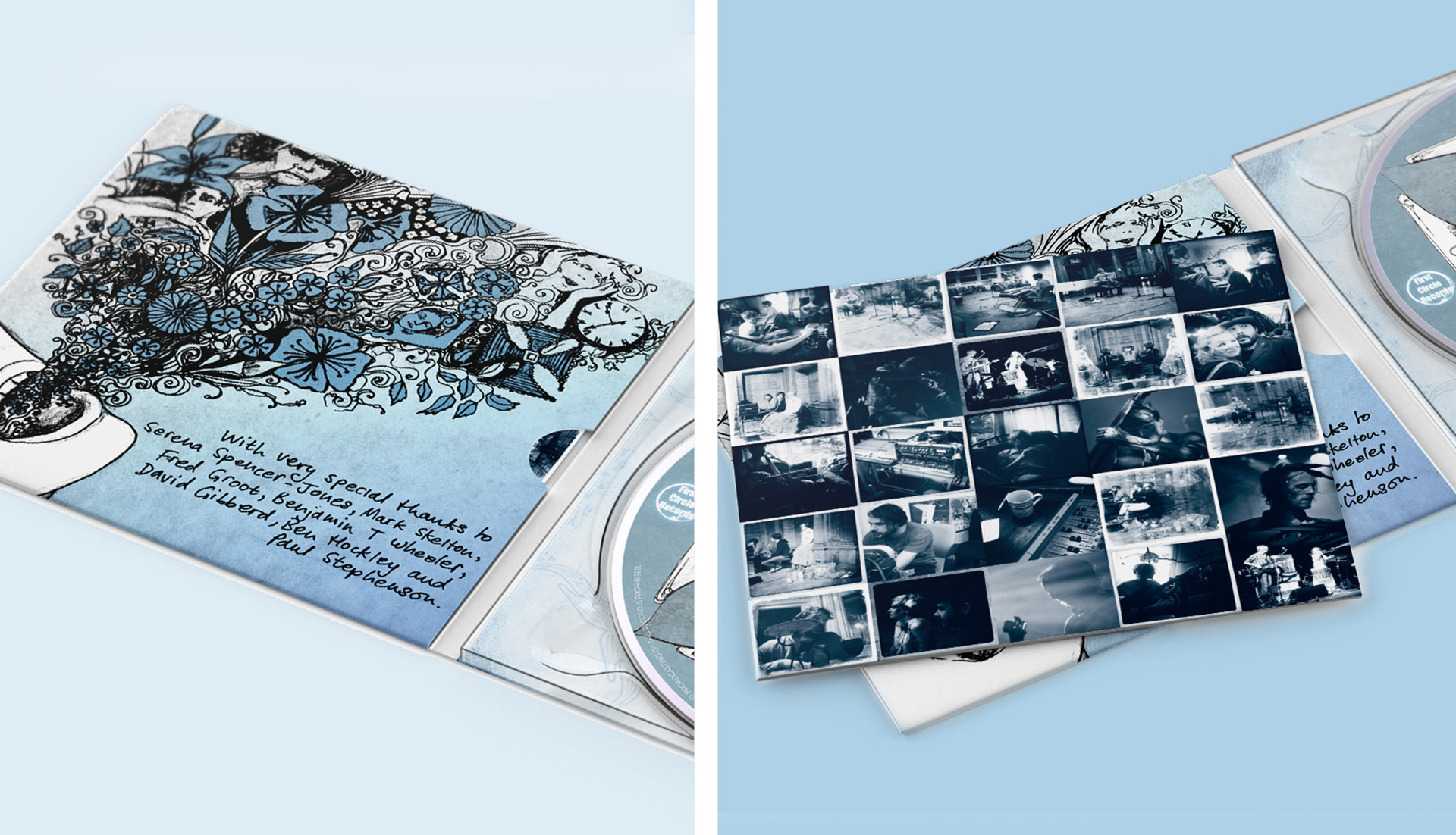 For this album, collaboration with artists Amy Barton and Shelley Still resulted in a package layout that blends their portraits and illustrations with layered graphics, creating a cohesive and distinctive design.